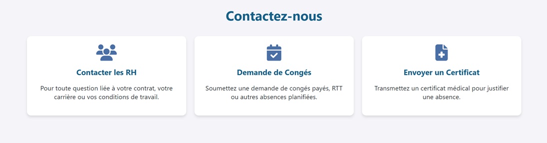 Page membre, Emploi du temps, Newsletter de la compagnie, Contact (rh et autre)